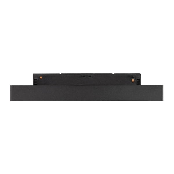 Oprawa do torów magnetycznych MAG-FLEX. Moc 8 W, strumień świetlny 440 lm, 55 lm/W, ciepły 3000K, CRI>90, kąt 24°, napięcie zasilania 48 V. Czarna prostokątna obudowa metalowa, stopień ochrony IP20. Rozmiar: długość 235 mm, szerokość 22 mm, wysokość 42 mm. Montaż na szynie MAG-FLEX.