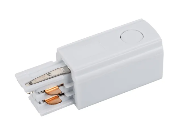 Biała osłona złącza zasilania, 68x56x25mm. W przypadku stosowania z szynami i akcesoriami z innej serii może wystąpić różnica w kolorze.